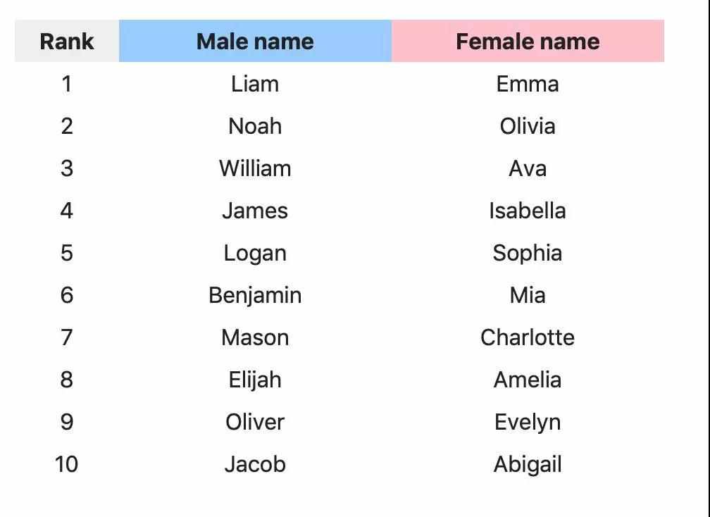 这不,美国社保局(US Social Security Administration)发布了2018年度美国最受欢迎的十个男*名和女*名。