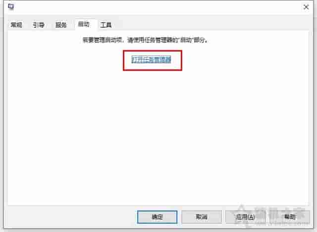 接下来是将开机自启的软件禁用了,我们切换至“启动”的选项卡,点击“打开任务管理器”,如下图所示。