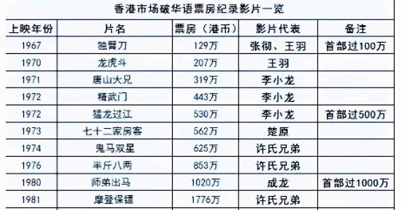 香港市场破华语票房纪录的影片