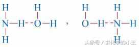 不仅同种分子间可形成氢键,不同种分子间也可以形成氢键,NH3和H2O间的氢键如下: