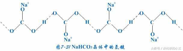 除了分子间的氢键外,某些物质的分子也可以形成分子内氢键如:邻硝基苯酚、NaHCO3晶体等。(见图7-31)