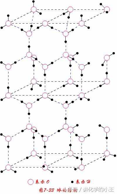 在冰中每个H原子都参与形成氢键,结果使水分子按四面体分布,每个氧原子周围都有四个氢。这样的结构空旷3,密度也降低3。