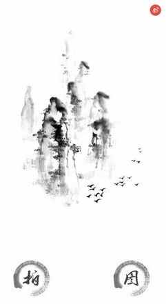 《字拍》的界面非常简洁,水墨画的背景,极具中国古典气息。首先,我们需要选择拍照或是从相册选取一张图片。