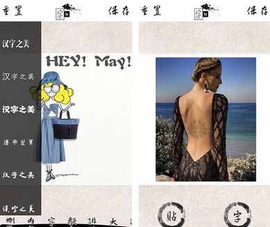 除了能添加文字呢,《字拍》还有大量丰富的贴纸资源,*括泼墨、剪纸、纹身等,别具古韵!