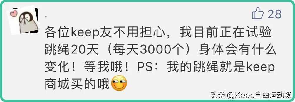 然后就有热心 Keeper 留言说自己正在跳绳,每天 3000 个,想知道连跳 20 天后身材会不会有什么变化!
