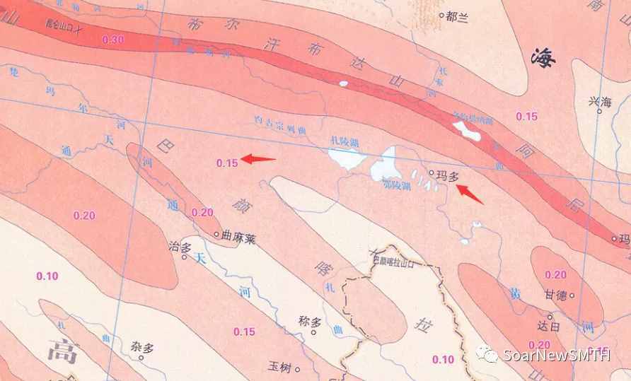 2019年长宁地震,震级6.0级,震源深度16km,中国地震局发布的地震烈度图显示,震中烈度为8度。对照本次玛多地震,震级7.4级,震源深度17km,推算震中烈度为10.1度。