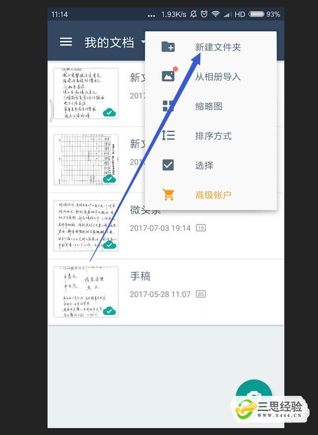 创建文件夹进入软件的主界面之后,我们点击右上角的更多功能,选择创建新的文件夹,然后给文件夹命名一个名字扫描照片。