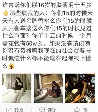 第二招:外围们常常爱炫富