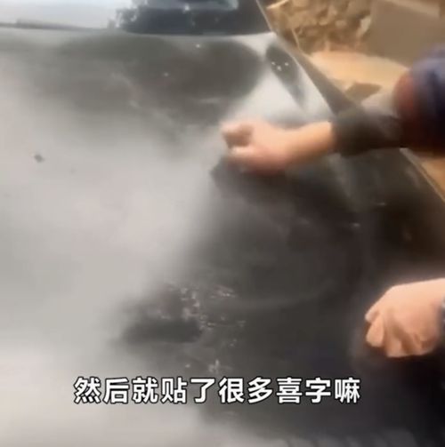车上沾满了喜字