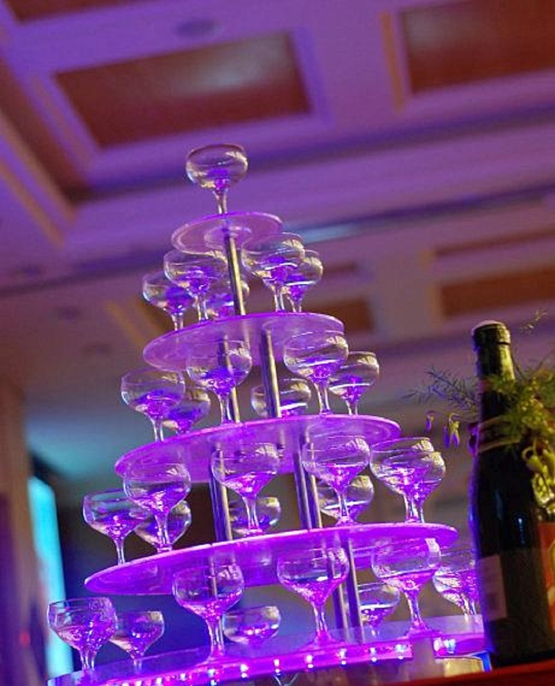 香槟塔摆放的高度不宜过高,应该以新人的身高为标准,塔身搭建四五层左右即可。