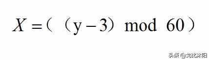 mod 是余数函数。该公式的意思就是用公历年减去3,再整除以60,得到的余数,以此余数查询干支纪年表对应的干支纪年。例如,2021年,计算余数得38,查表38对应辛丑,即2021年是辛丑年。