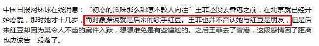 多年之后,当红豆已经入狱,王菲对于外界的追问,并不否认红豆是自己的男朋友。
