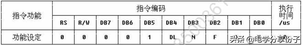 功能:设定数据总线位数、显示的行数及字型。参数设定的情况如下: