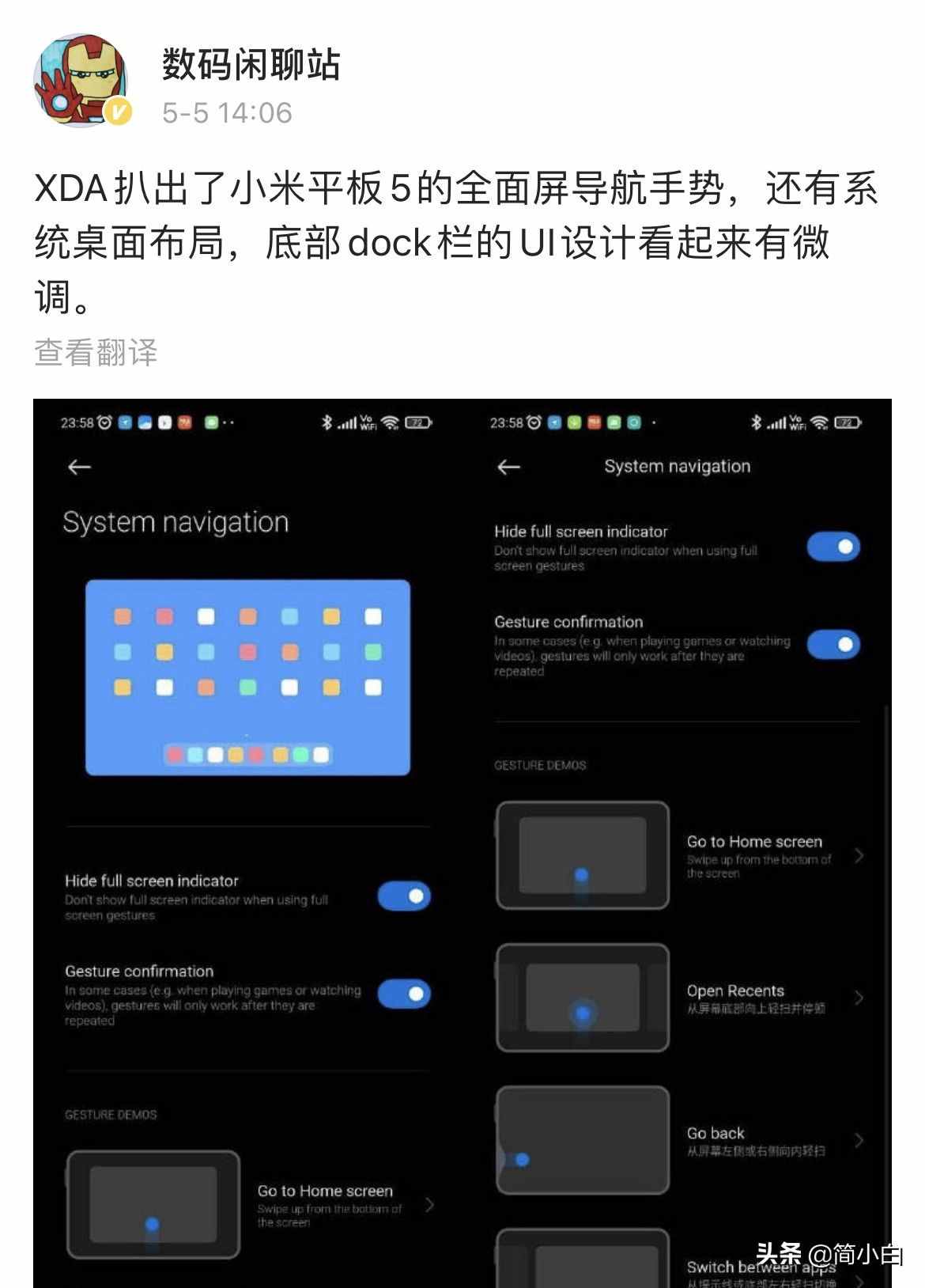 对于小米平板 5 大家都已经期待很久了,官方在年初宣布今年确定会发布新款之后就没有了消息。近日,XDA 论坛放出了 MIUI 测试版关于小米平板 5 的全面屏操作手势页面,主屏的布局也被曝光出来。能够看出小米内部正在进行着发布前的准备,相信不久就会对外发布。