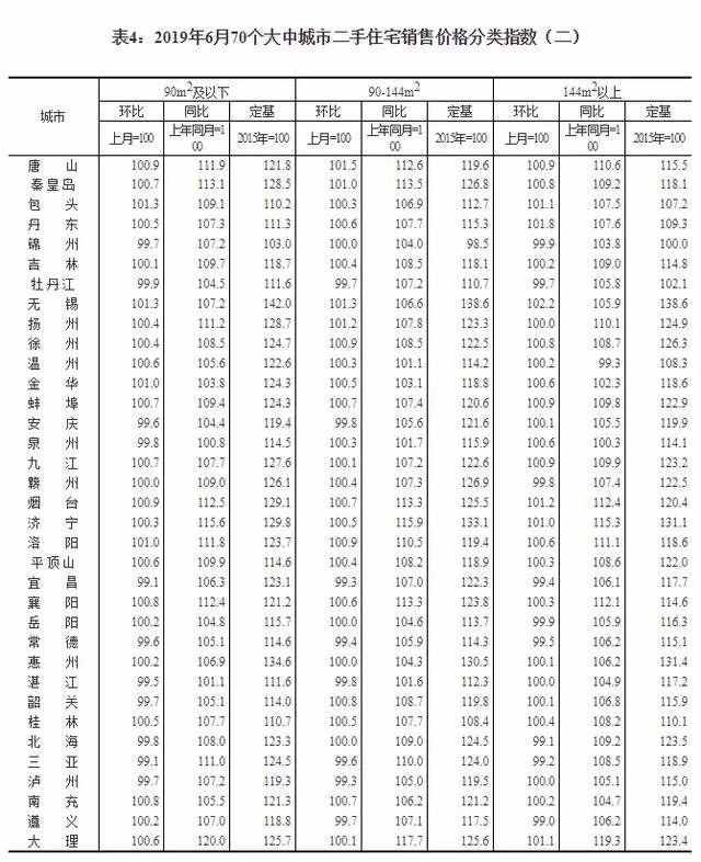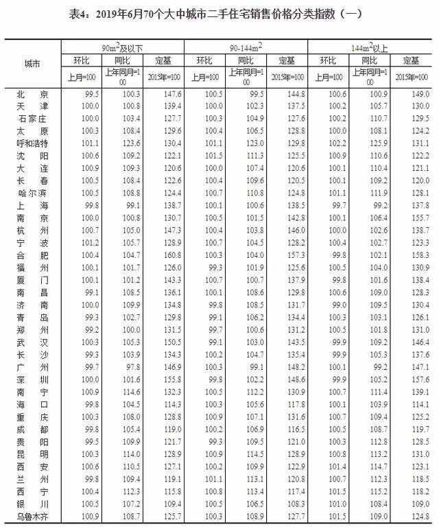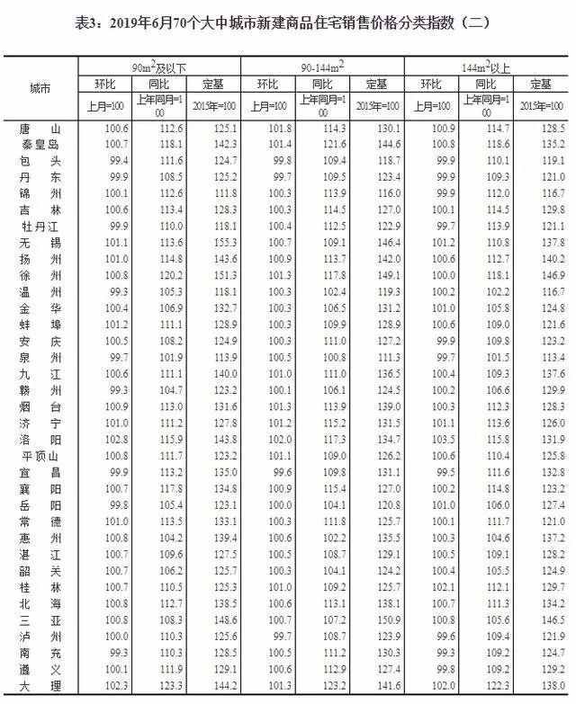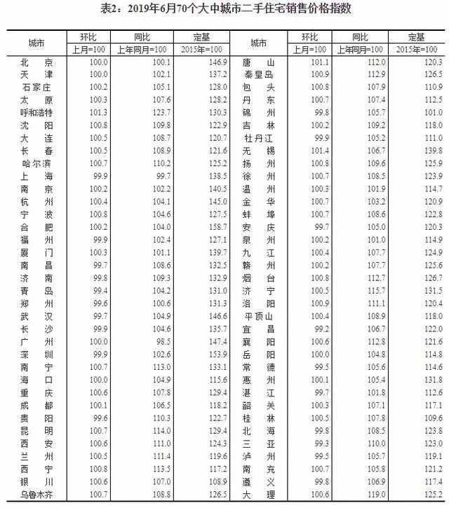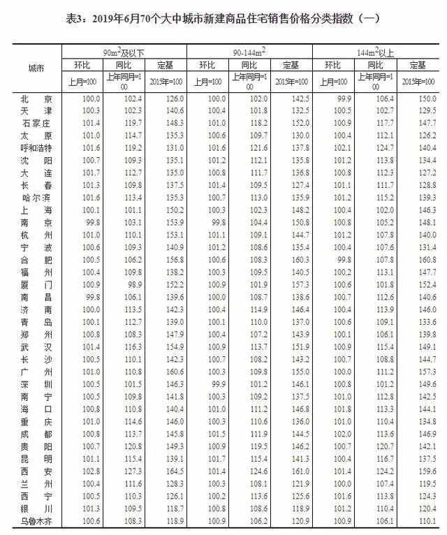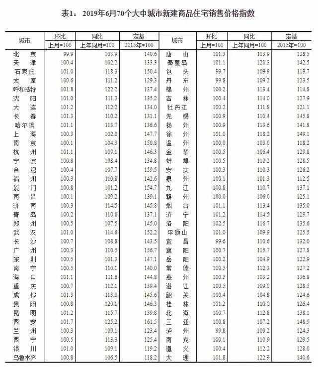 2019年6月份70个大中城市商品住宅销售价格变动情况