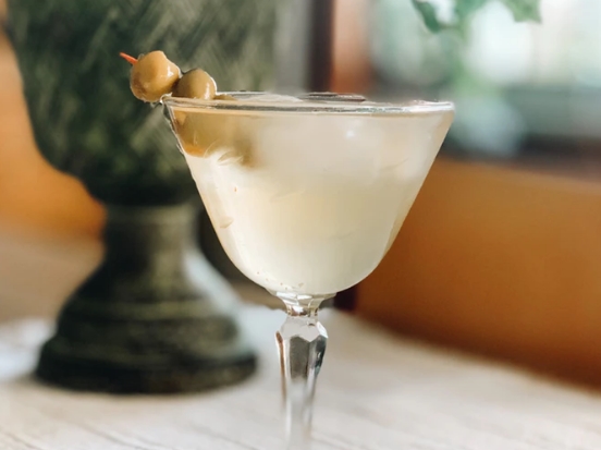 干马天尼(Dry Martini)是一款鸡尾酒,酒精度数在38度到50度之间,具体情况要视调制的基酒而定。干马天尼是以金酒为基酒,然后用甜苦艾酒、苦味剂、黑樱桃利口酒混合调配而成的。