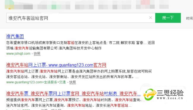 首先就是在电脑上面输入你所在地区的客运站名称,我是以淮安汽车客运站为例,然后点击搜一下。