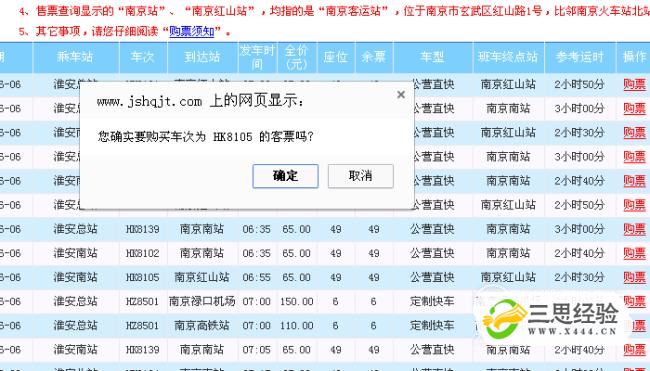 选择购票后,会弹出对话框,你确定要购买某某班次的客票吗,点击确定。