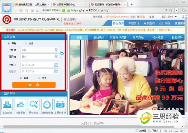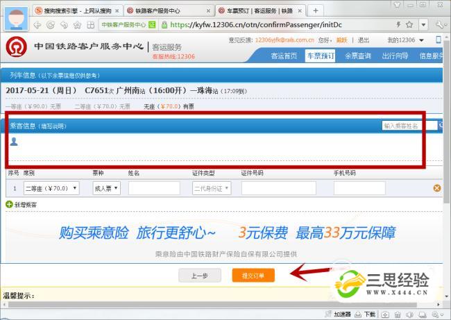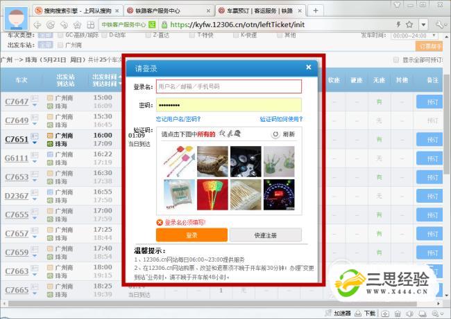 正文 广珠轻轨怎样网上订票 90558 V管理员 /2024-03-28 /234 阅读 0328 广珠轻轨网上订票01打开电脑,在搜狗搜索中,搜索“12306”02在搜索结果中,选择12306官网,点击进入。03进入12306官网后,选择“新版售票”04进入售票界面,在左侧选择相应的出发地和目的地等信息,点击“查询”05进入到车次信息界面,找到想要进行购买车票的车次,选择“预定”06进行帐号登录。07选择乘车人信息,点击“提交订单”08确认订单信息,点击“确认”,进行支付即可。购买*后,前往车站用二代身份证进行取票即可搭乘、