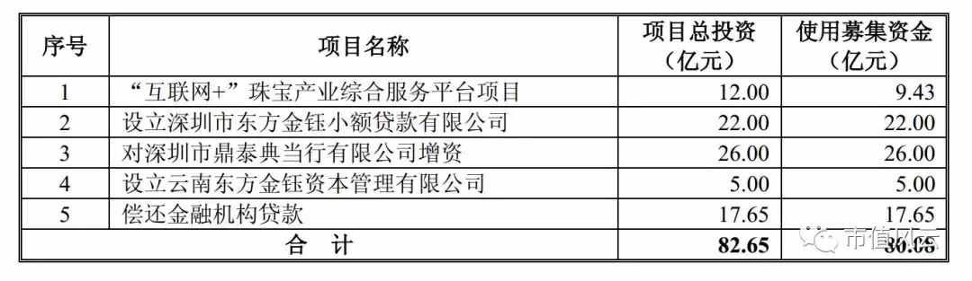 2011年8月东方金钰拟以19.42元/股发行不超过4000万股募集7.8亿元,其中15000万元用于北京珠宝专营店、15000万元用于徐州珠宝专营店、30000万元用于云南腾冲翡翠交易中心项目、20000万元偿还银行贷款。