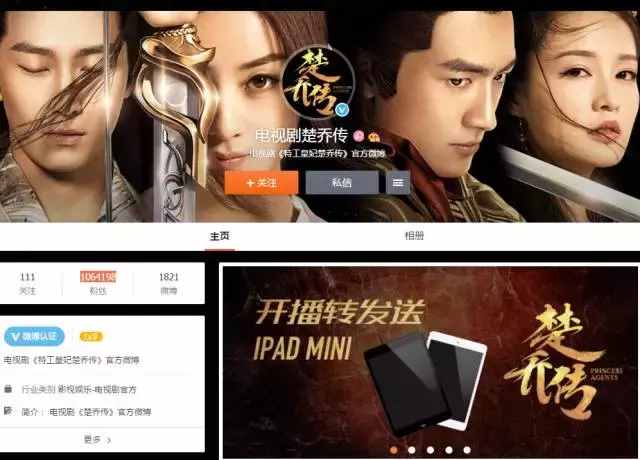 赵丽颖微博。女主赵丽颖微博宣传也是不遗余力,除了时不时发布电视剧海报、视频之外,几乎每次日常的更博都会带上#楚乔传#相关话题,4月21日的一条微博被转发62万余次。